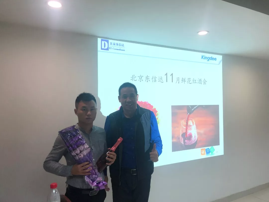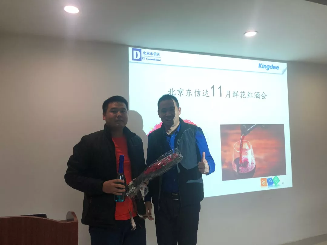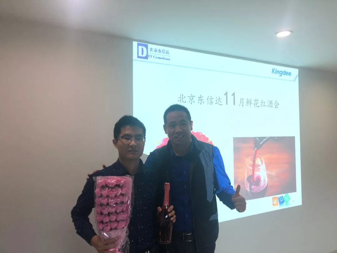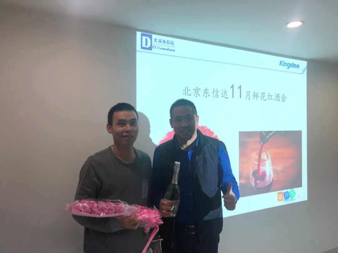 公司大会议室召开了北京东信达11月的鲜花红酒会!